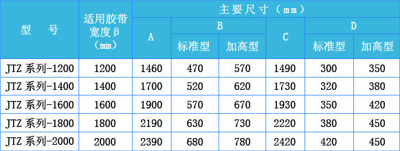 JTZ系列型 1200mm-2000mm寬度輸送帶的傳感器規格尺寸 表 3